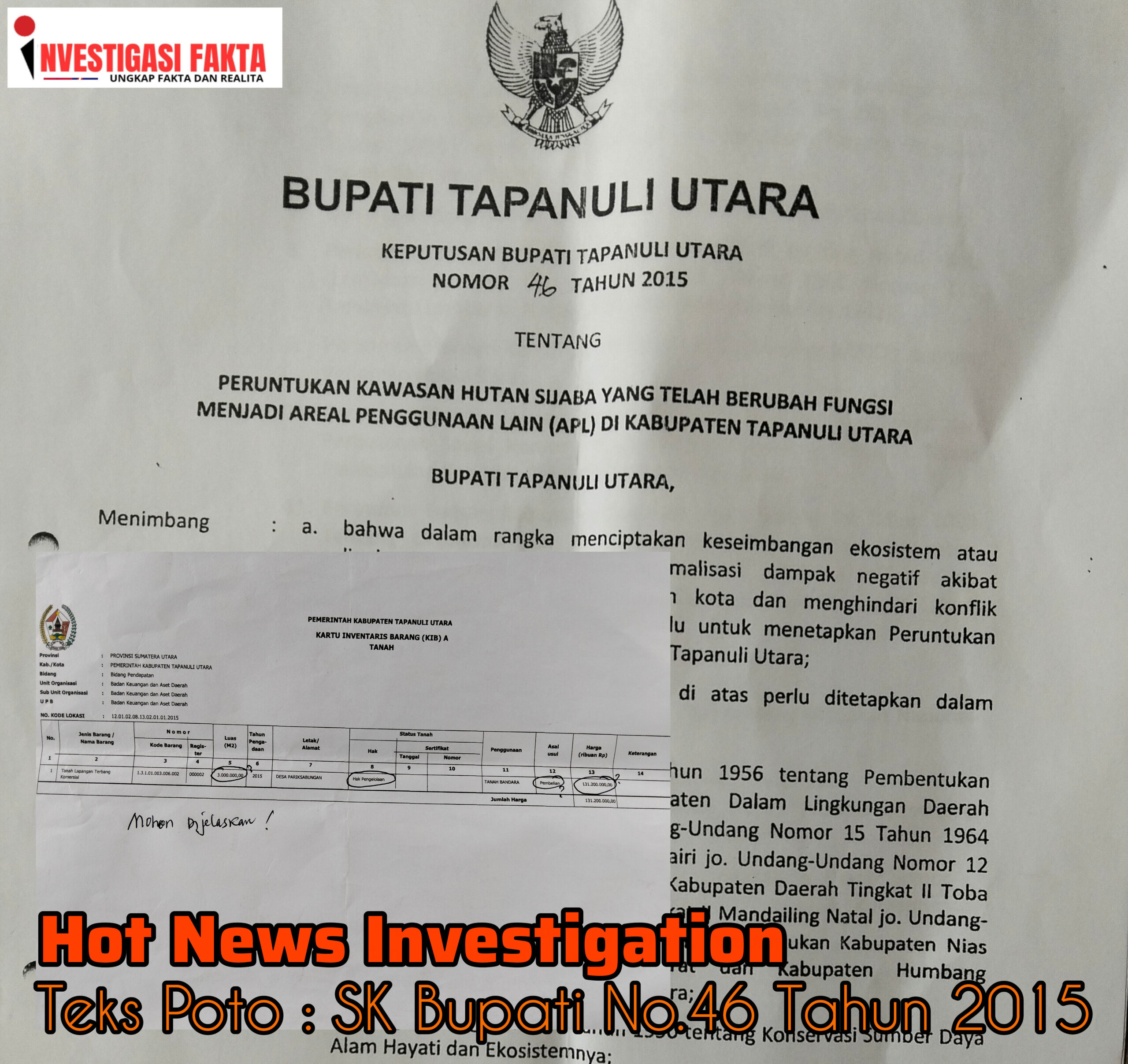 Lebih lanjut, Aleng menilai penerbitan SK Bupati Taput Nomor 46 Tahun 2015 berpotensi menimbulkan persoalan hukum serius.
