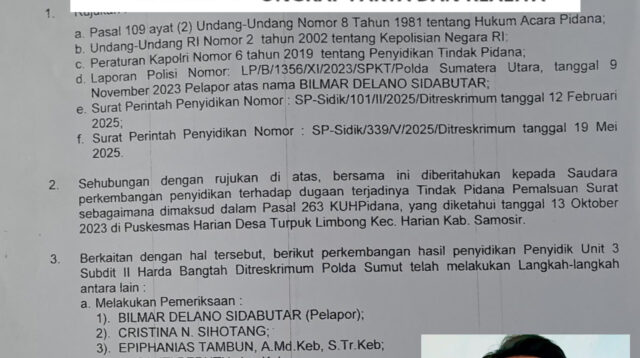 Investigasifakta.news Medan, 09/09/2025 – Kasus dugaan pemalsuan tanda tangan dokumen CPNS di Kabupaten Samosir kembali […]